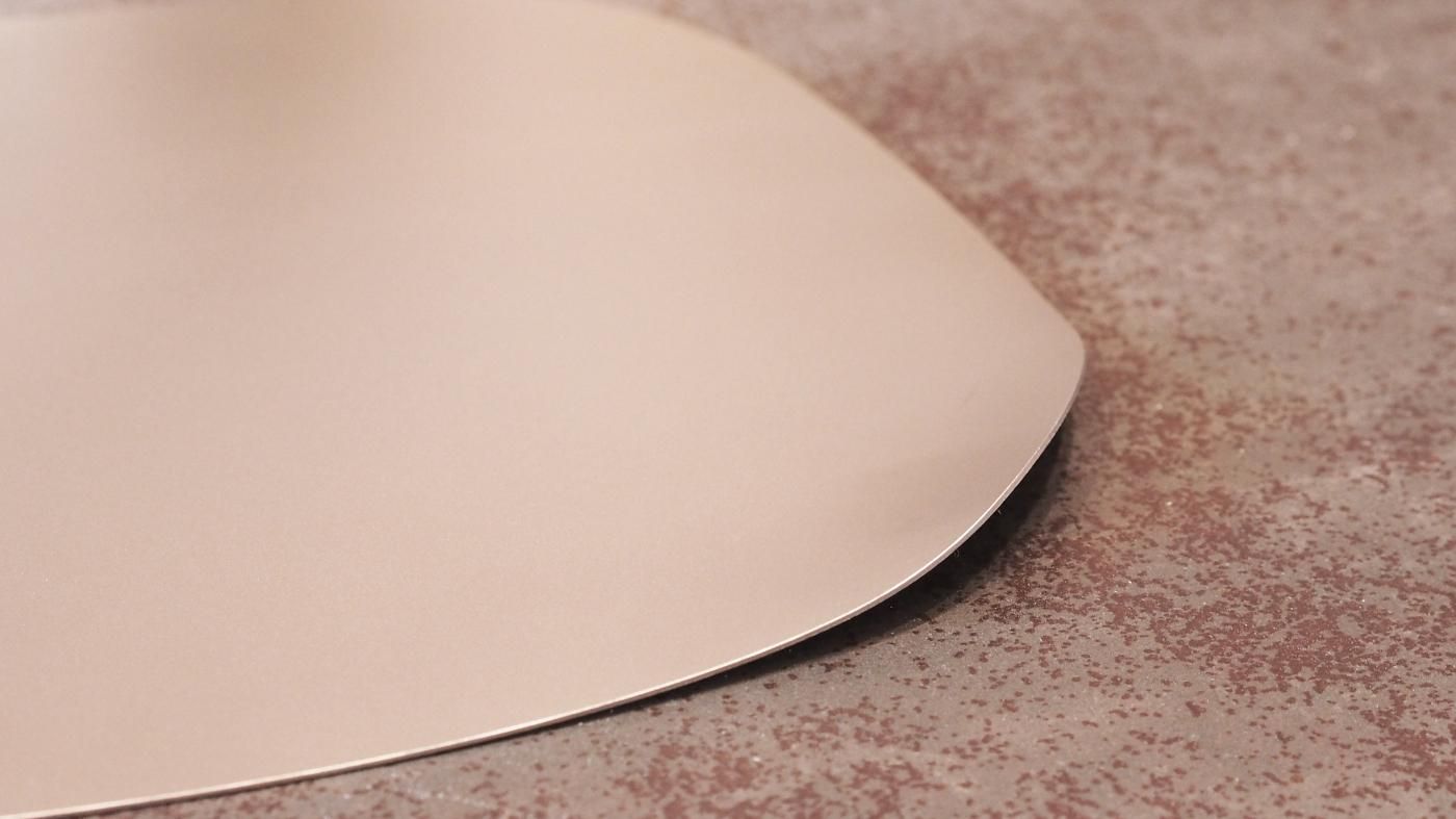 『SIKI TITANIUM CUTTING BOARD』はチタン以外の元素比重が0.08%未満で、純度99.9%以上の純チタンを使用しています。コーティング類はしておらず、傷がついても酸化膜が生成されるので、使用するにつれてチタンの表面特性が失われることはありません。